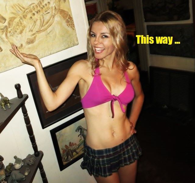 Visitors — who are at least 18 years old – may also want to check out Gallery 2. If so, CLICK HERE or on the photo below, left. There’s a whole “tribe of cavegirls” outside waiting to meet you. But watch out for those spears!