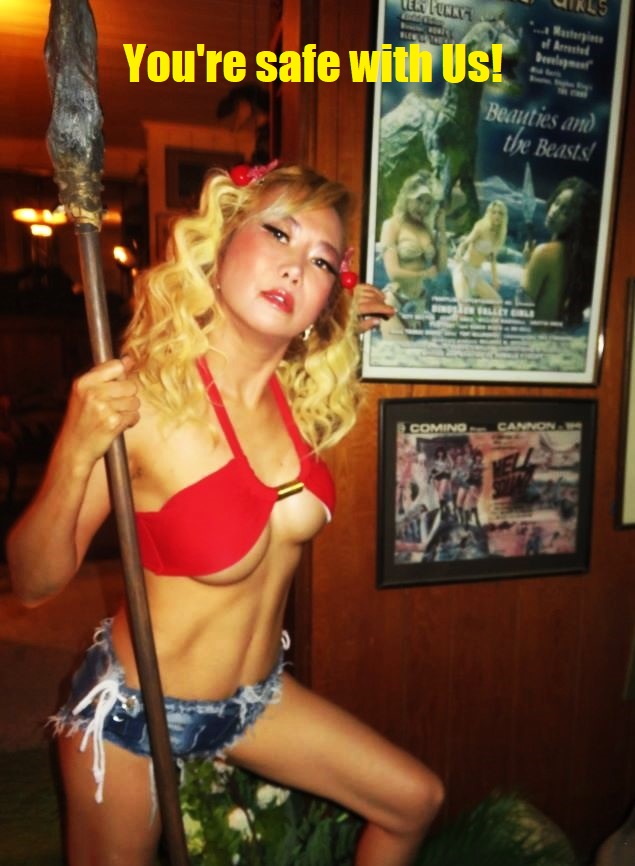Visitors — who are at least 18 years old – may also want to check out Gallery 2. If so, CLICK HERE or on the photo below, left. There’s a whole “tribe of cavegirls” outside waiting to meet you. But watch out for those spears!