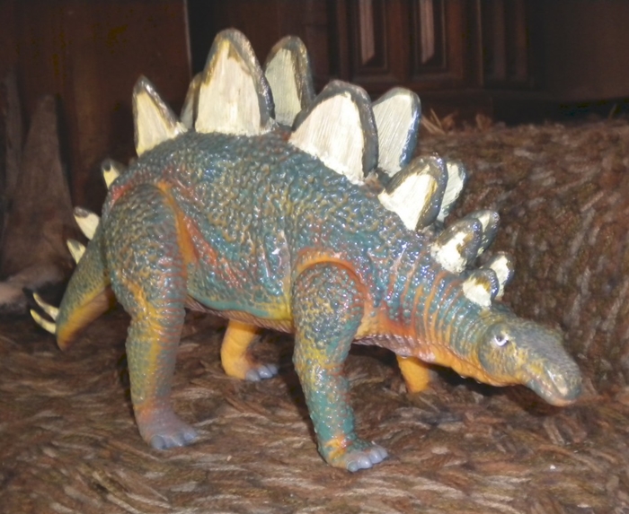 Vinyl Stegosaurus belonging to the “Thunder Beasts” toy set, made by M. T., a company in China.