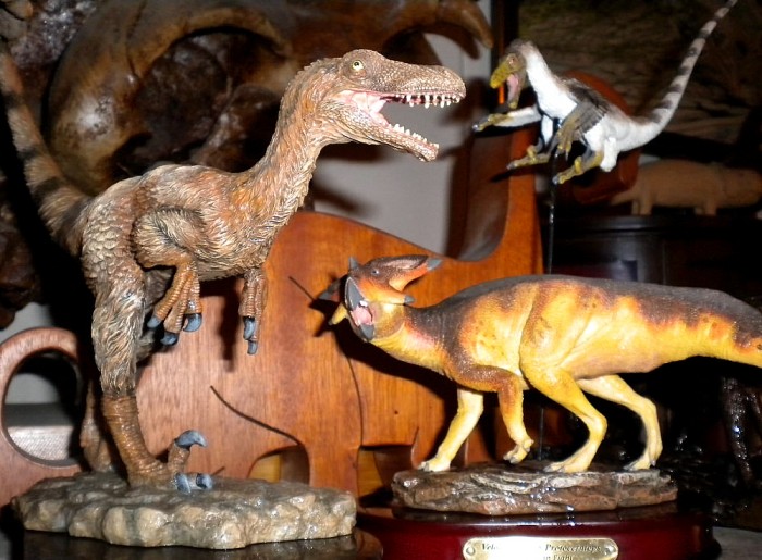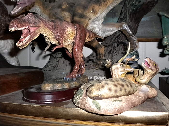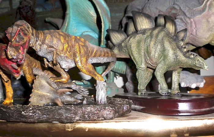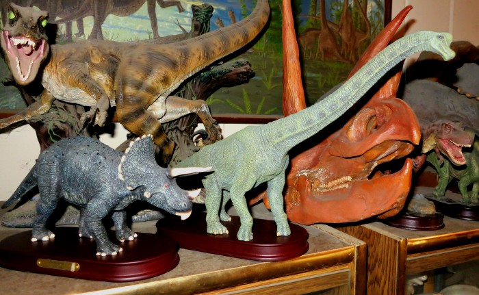 Brachiosaurus, Stegosaurus, Deinonychus. Triceratops and Tyrannosaurus figures from DinoStoreus (2000s).