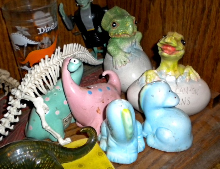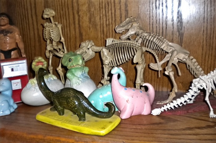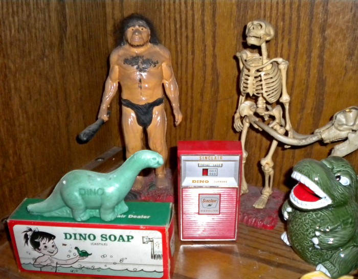 More skeleton assembly kits — ITC (Ideal Toy Company) Neanderthal Man (ITC), American Mastodon (Palmer). & Tyrannosaurus and Battat Apatosaurus – Sinclair collectibles. salt & pepper shakers, ceramics, etc.