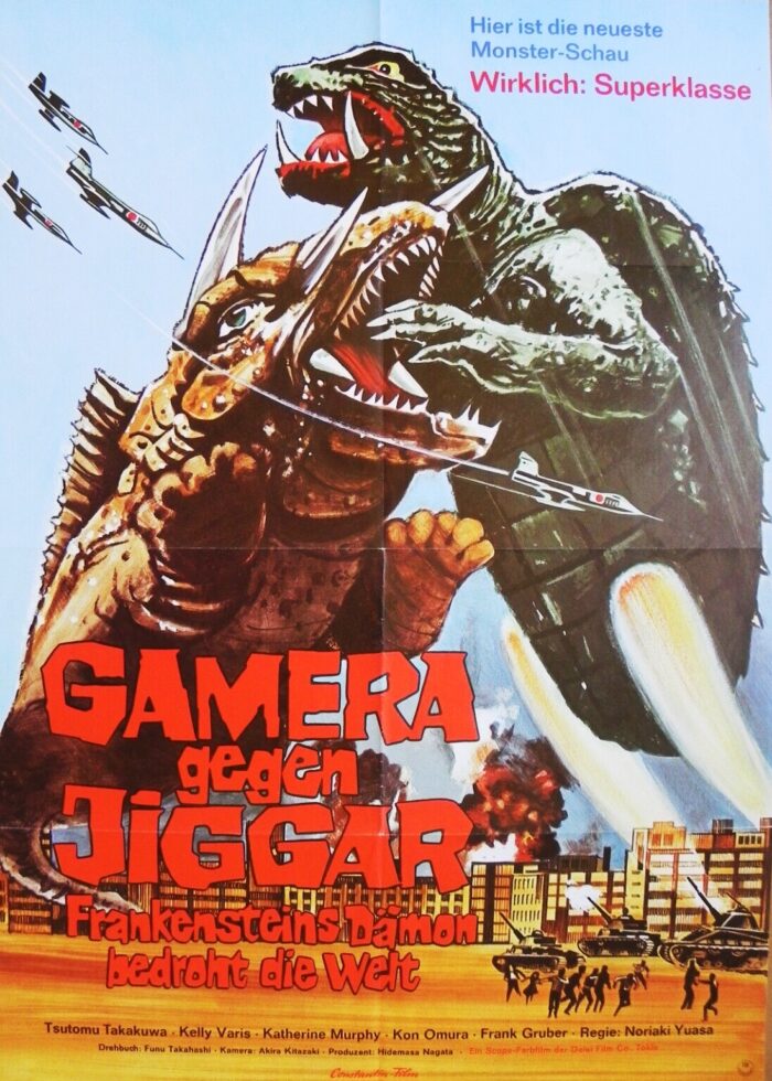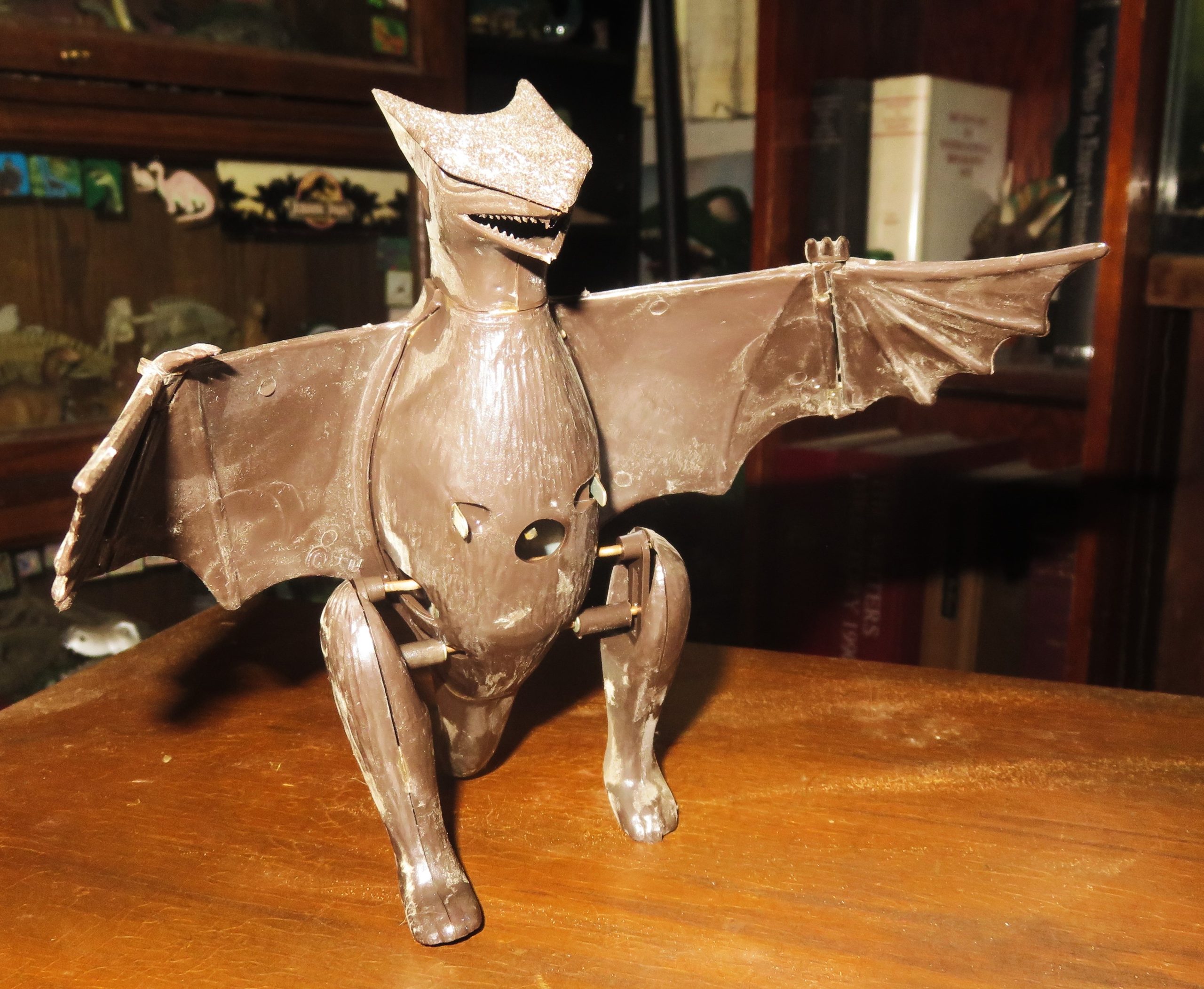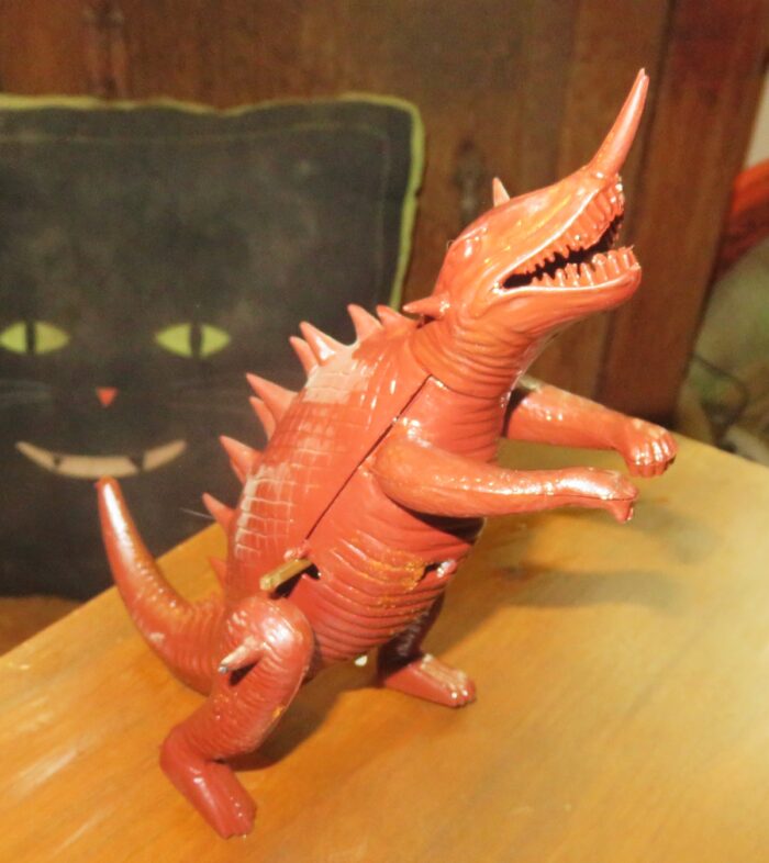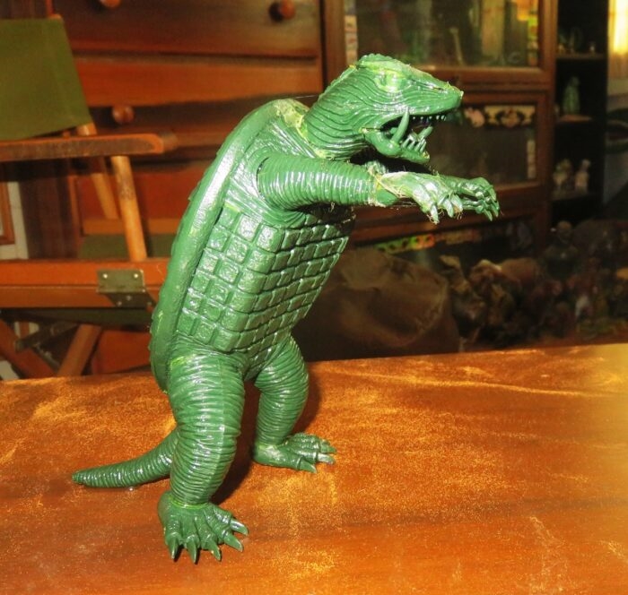 The Japanese motion picture company Toie Animation, Ltd.’s response to Toho Company, Ltd.’s immensely popular Godzilla franchise was Gamera, the giant prehistoric flying turtle. Like Godzilla, the chelonian kaiju spawned a long-running series of movies, many (not all) of which were aimed directly at children, plus myriad collectible items, some of them shown here. Also like his Toho rival, Gamer (sometimes spelled Gammera) fought numerous equally fantastic creatures, some of them prehistoric.