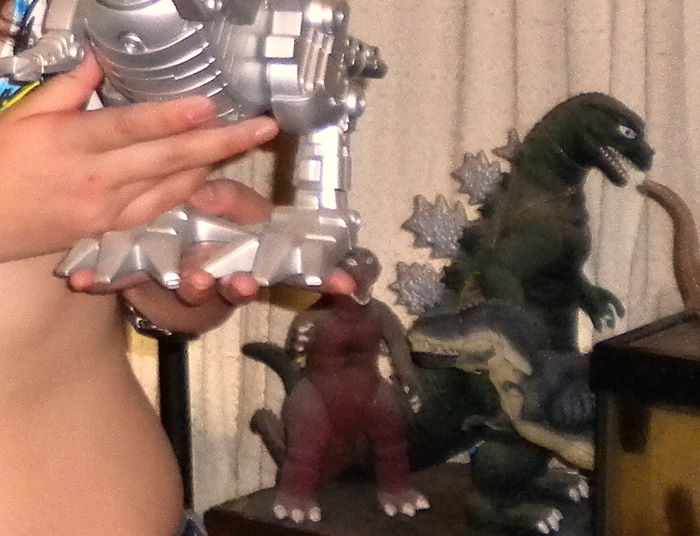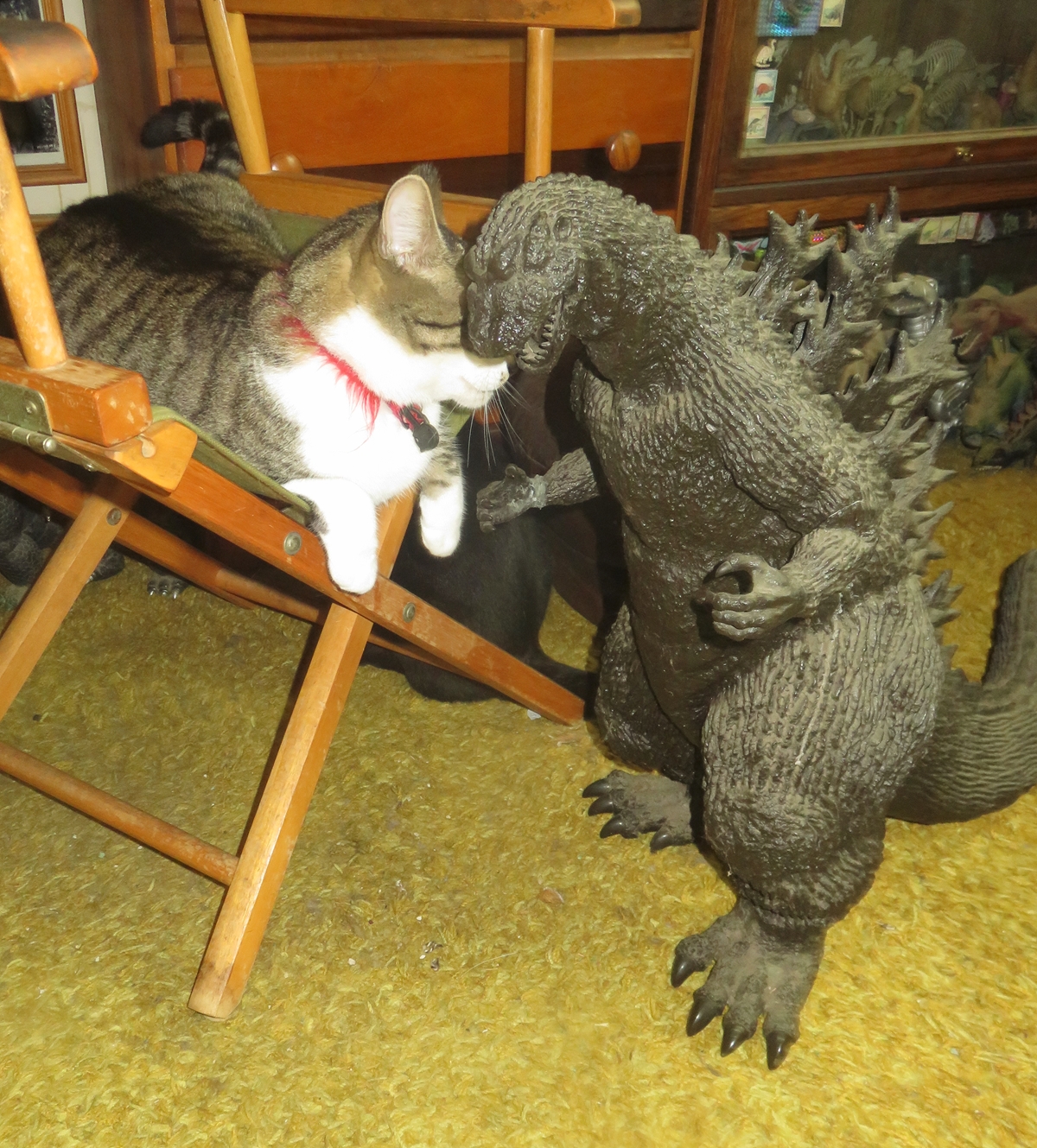 For a look back at my 1985  Godzilla Anniversary Party, click HERE. To see Godzilla as he (and other monsters) appeared in my 1964 amateur movie Son of Tor click HERE; and for my earlier (and much more amateur movie) The Fire Monsters (1959), click HERE.  To see my homemade Godzilla albeit ephemeral “collectible” formed from snow. click HERE.