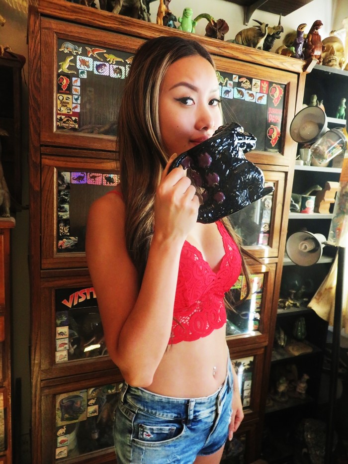 I have way too many Godzilla (the Japanese Kaiju or giant monster)  model kits and other items, including a Kaiyodo resin cameo, movie posters, lobby cards, pressbooks and stills, record albums, puzzles, nonfiction books, novels various comic-books series, magazines, souvenir postcards, trading cards, records, DVDs and videos, games, ashtray, banks, ceramic figures, model kits, toys, even a roaring  Godzilla head, speaking telephone receiver cradle, squirt gun and cigarette lighter) to show, but here is a small sampling of some “Big G”-related items. Among my more prized Gojira (the giant prehistoric monster’s Japanese name) items is the head from the movie Godzilla 1985, pulled from a mold for one of the film’s special-effects miniature models (above right).  And if you are wondering, yes, I have more Godzilla items that are not represented in these photos.