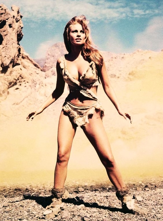 Yes, she is striking poses similar the iconic one made famous in the 1960s by actress Raquel Welch as “Loana the Fair One” in the movie One Million Years B.C. (1967).