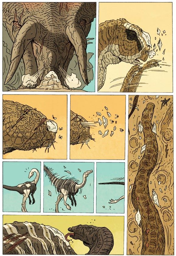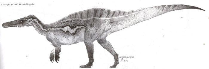 Age of Reptiles (above and directly below) is an Eisner award-winning comic book series created, written and illustrated by Ricardo Delgado, who also did conceptual artwork for Disney’s CGI-animated movie Dinosaur and on Jurassic Park III. Below, last image, is a life restoration by Ricardo of the dinosaur Suchomimus that he drew for my book Dinosaurs: The Encyclopedia, Supplement 2.